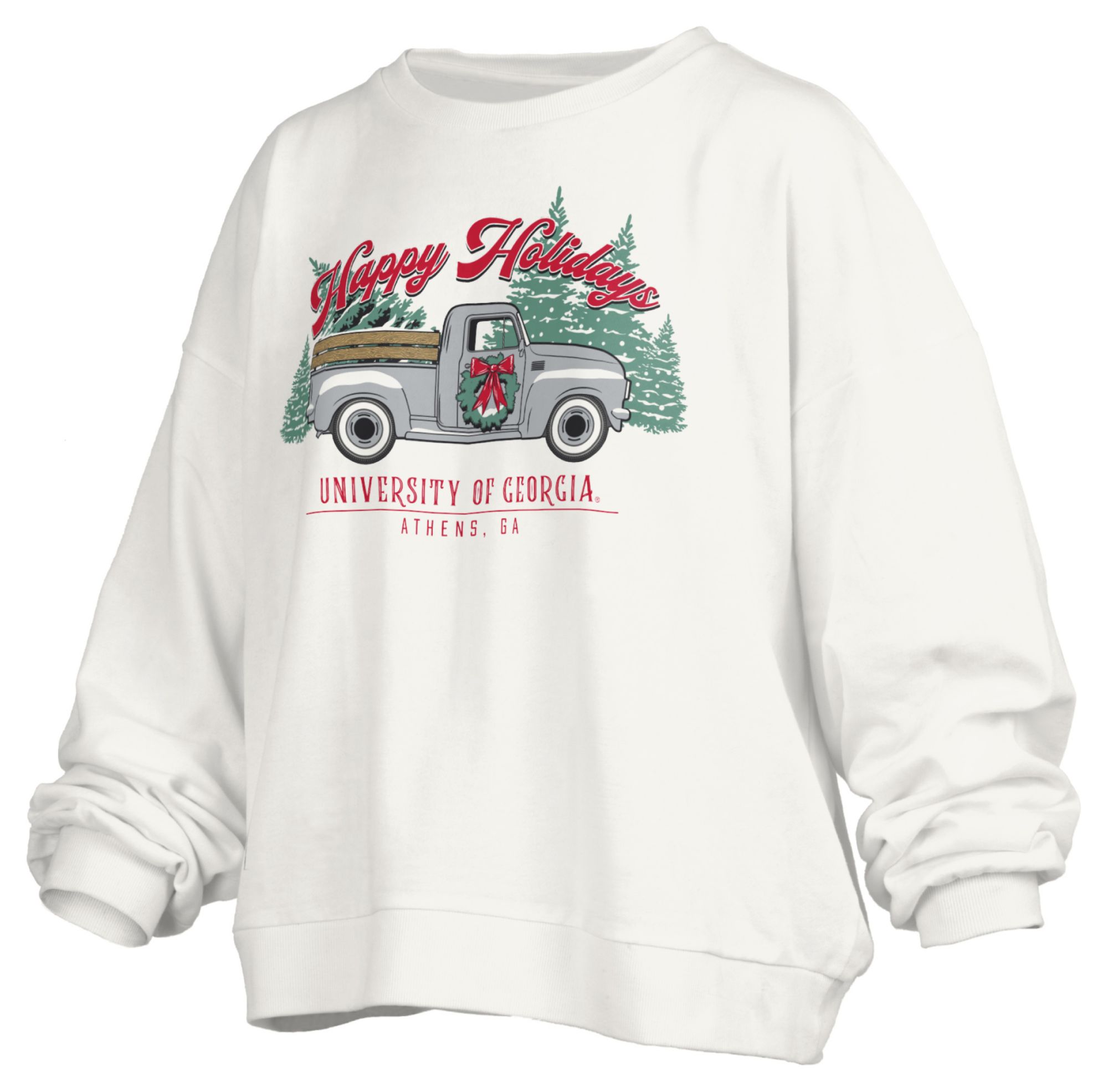 Pressbox Women's Georgia Bulldogs White Holiday Trucker Crewneck