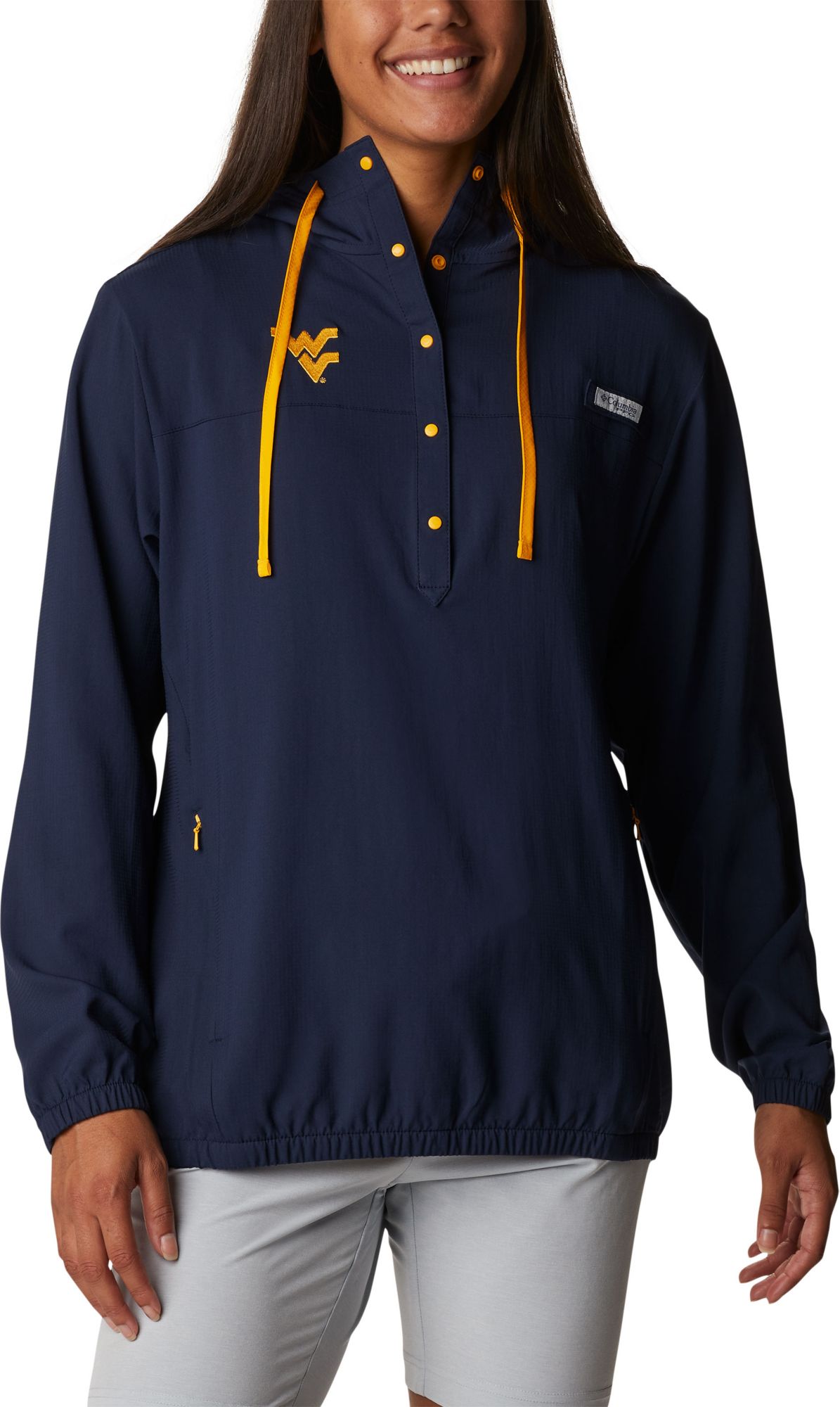 Columbia Women's West Virginia Mountaineers Blue PFG Tamiami Quarter-Snap Long Sleeve Hooded Shirt