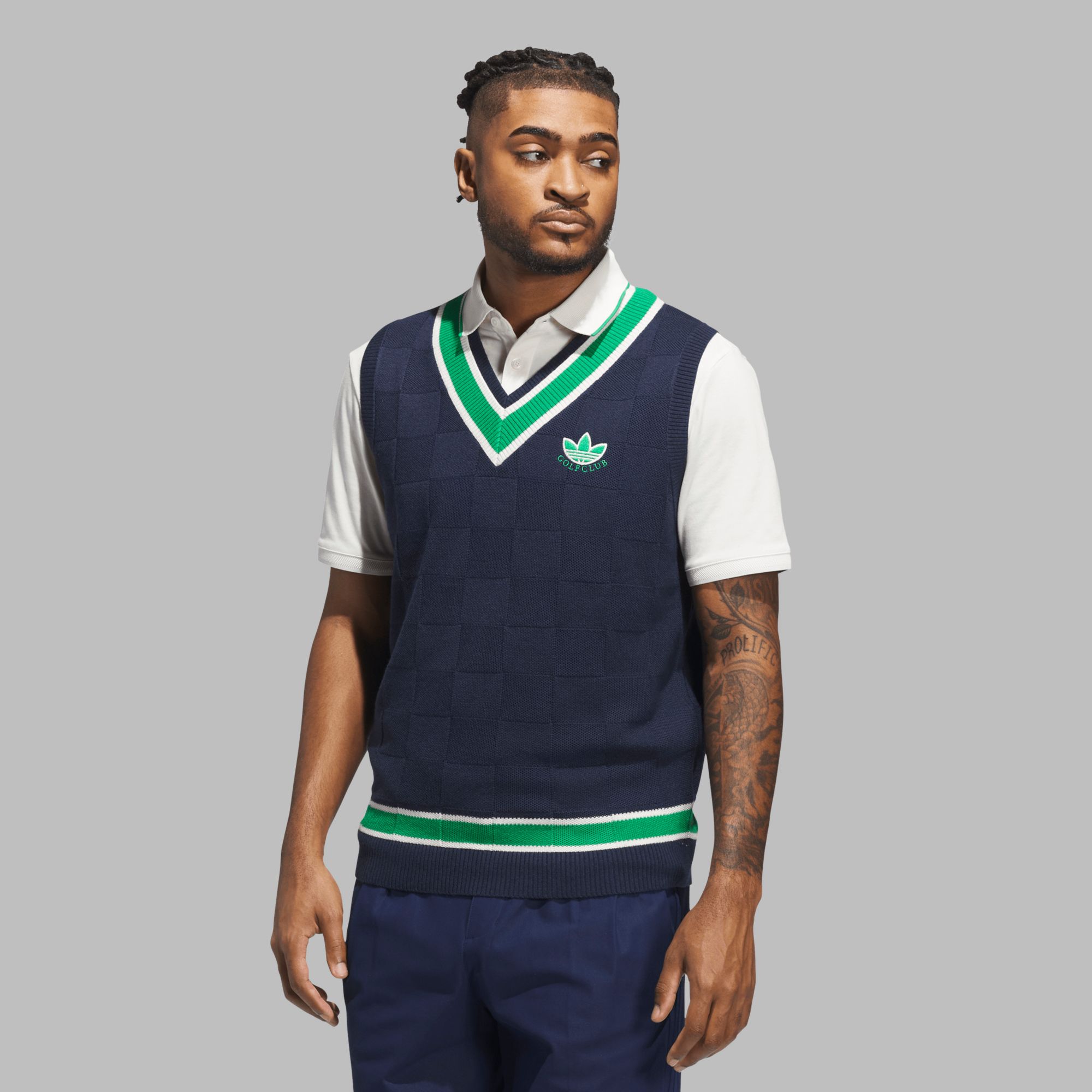 Elevate your golf attire with the OriginalsKnit Design Vest. This regular-fit vest is crafted from a blend of 55% recycled polyester and 45% wool, offering both versatility and comfort. The flatKnit Design construction and V-neck design make it a versatile piece for any golfer's wardrobe. Perfect for layering, this vest ensures you stay comfortable on the green without compromising on style.
