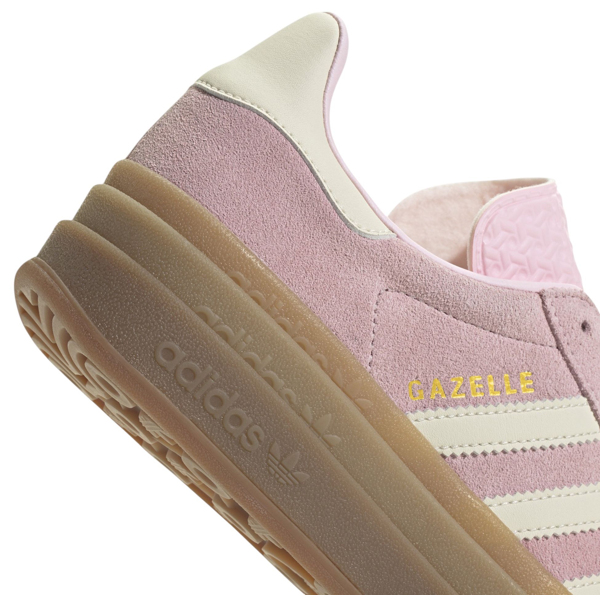 The adidas Originals Women's Gazelle Bold Shoes feature an iconic silhouette with bolder details, including serrated 3-stripes and a metallic-gold "Gazelle" accent. Designed for casual wear, these shoes boast a classic lace closure with a premium soft suede upper and a triple-stacked platform rubber outsole for added style and traction. Note that they run big, so it's recommended to size down by half a size for the perfect fit.