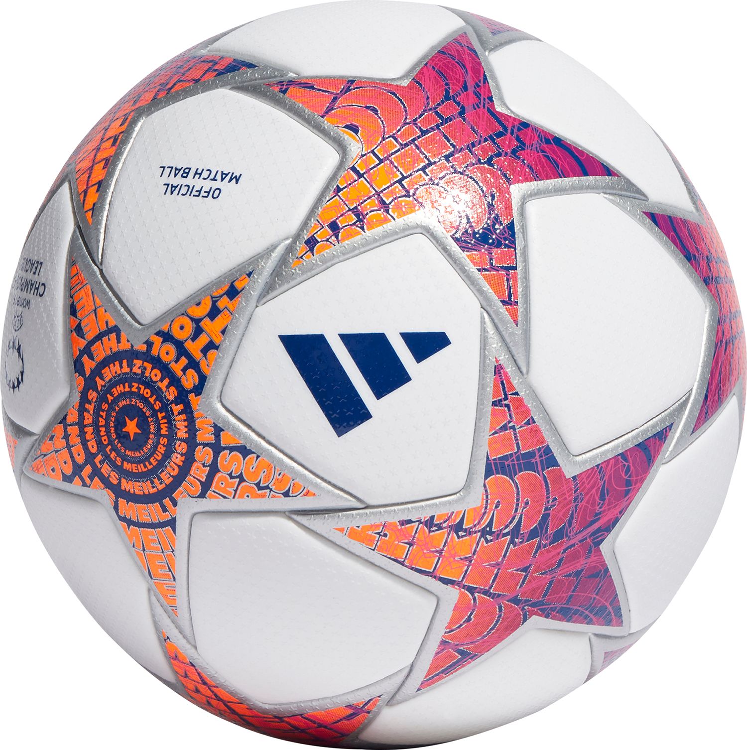 • Composed to make players feel invincible, the stirring lyrics radiate from the brightly colored star panels on either side of the UWCL Pro 23/24 Group Stage Ball