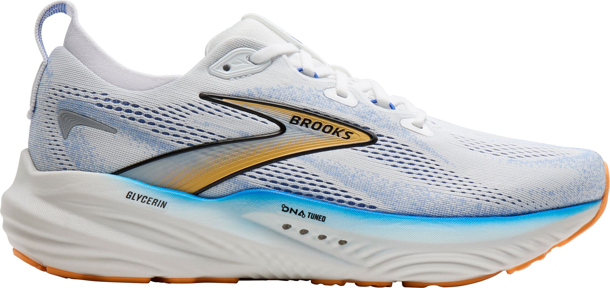 Elevate your running experience with the Brooks Men's Glycerin 22 Running Shoes. Designed with a new engineered double jacquard knit upper, these shoes offer a flexible and accommodating fit while ensuring your foot stays secure. Experience plush landings and responsive toe-offs, thanks to the nitro-infused DNA Tuned cushioning, all while enjoying lightweight durability and reliable traction on every run.
