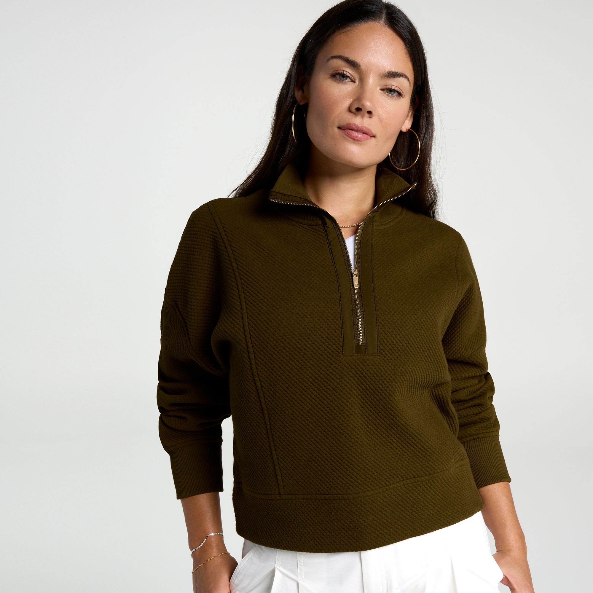 • Mock neck with 1/4 zip for custom coverage
