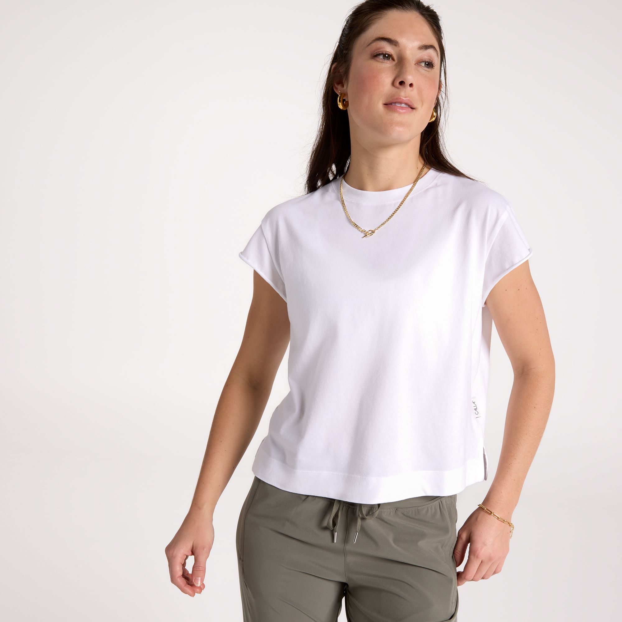 [This review was collected as part of a promotion.] I really like this CALIA Everyday Jersey Roll Sleeve Crew! The cotton is soft and breathable, so it’s comfortable for casual wear or errands. The roll-sleeve detail adds a cute, relaxed look, and the fit is true to size for me. It’s versatile enough to pair with jeans, leggings, or shorts. Overall great value for the price — I’ll probably pick up another color!