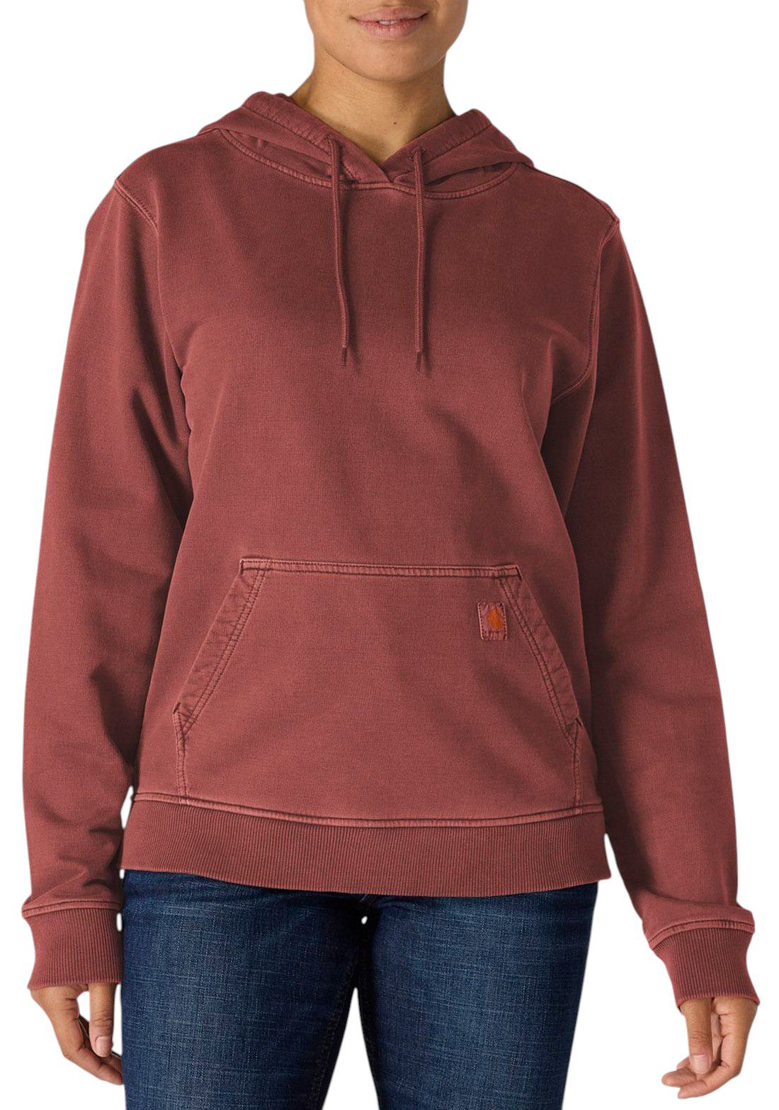 Pull on comfort worth of the weekend. This Women's French terry hoodie features a 100% cotton French terry fleece thats garment-dyed for full color saturation. A relaxed fit offers a little extra room for a casual feel.