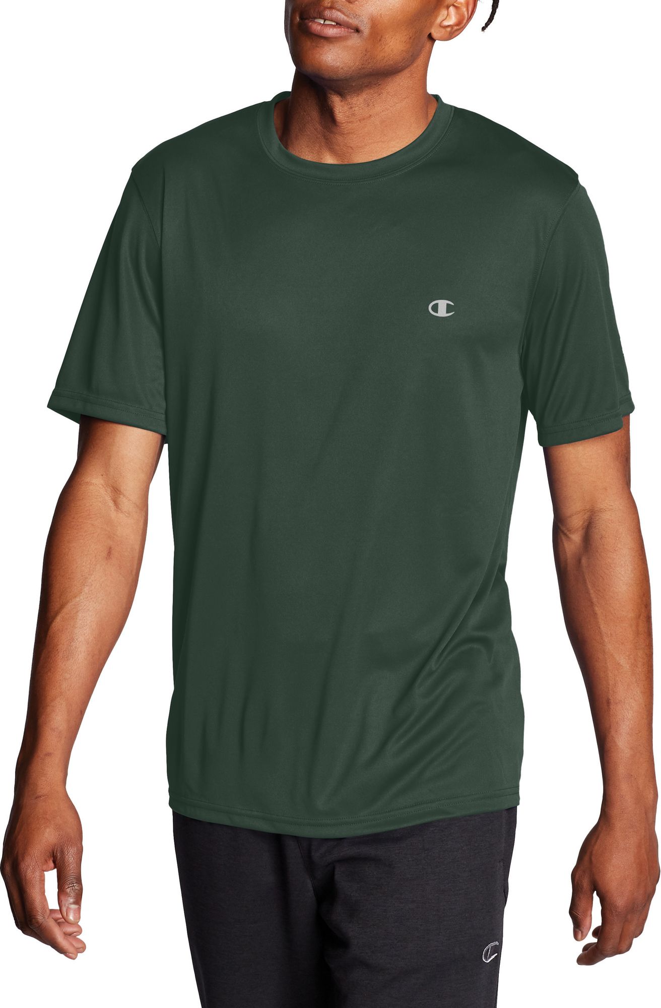 Complete your toughest workouts in comfort when you wear the Champion® Men’s Tech T-Shirt. Moisture-wicking technology keeps you dry as you work up a sweat, and a light, breathable fabrication helps you stay focused. The relaxed, regular fit design moves with your body, making this Champion® fitness tee a fast go-to.