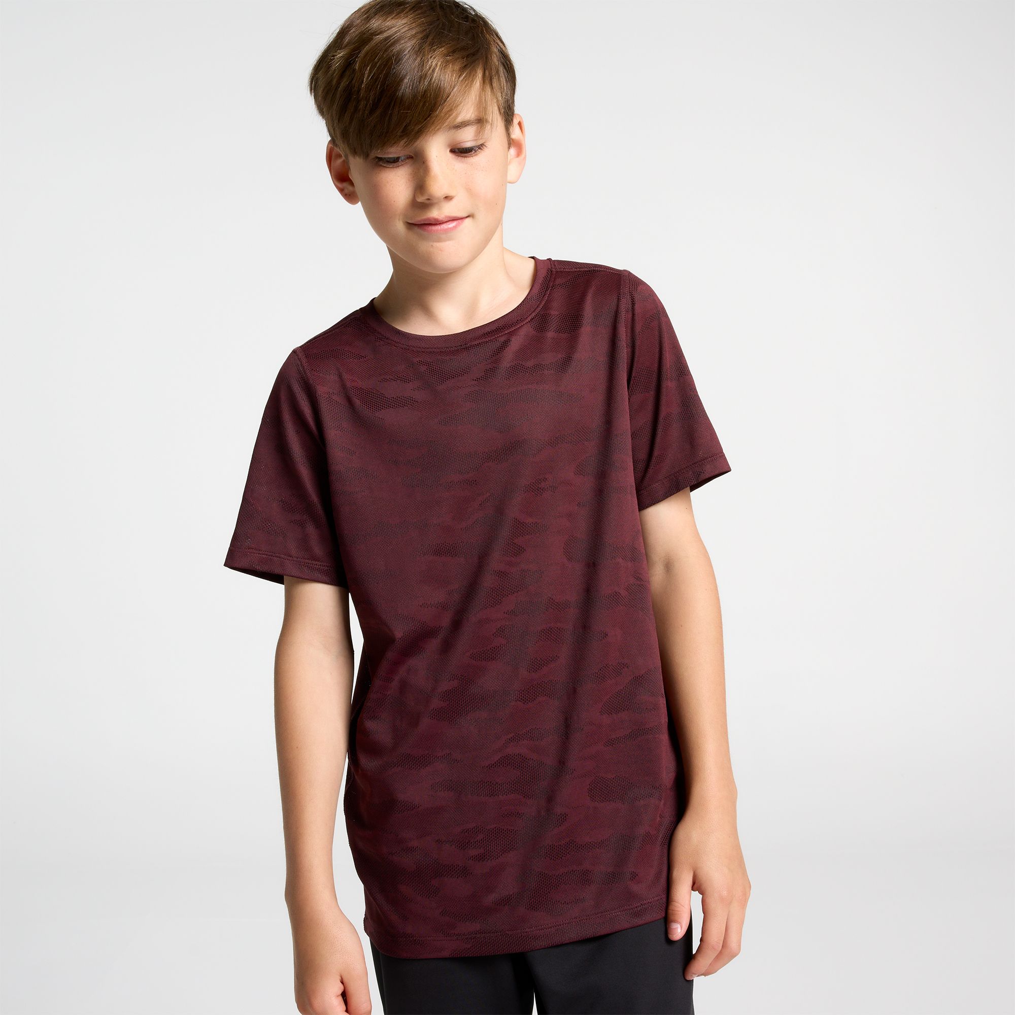 • Made with moisture-wicking material that keeps him cool and dry while moving