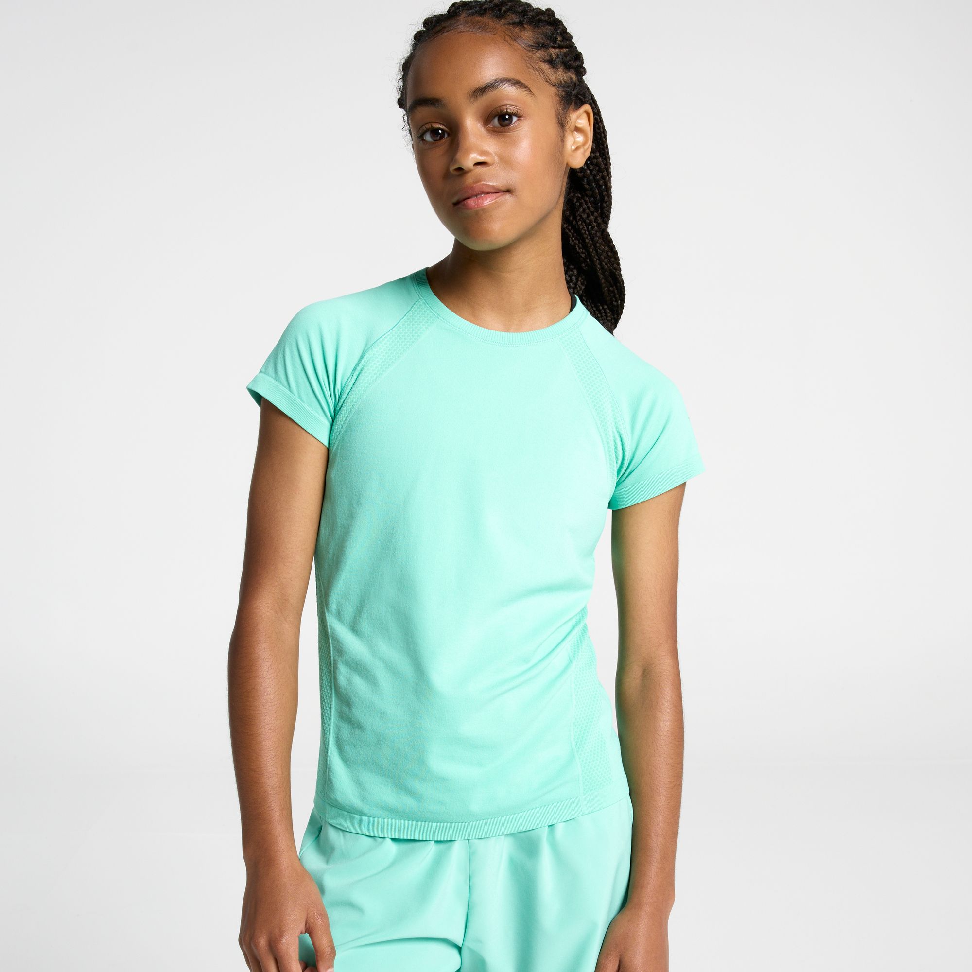 The DSG Girls' Movement Seamless Short Sleeve T-Shirt offers all-day comfort with its soft fabrication and seamless construction, ensuring she stays comfortable during any activity. This regular fit tee features a classic crewneck design and short sleeves for enhanced mobility. Equipped with moisture-wicking and anti-odor technologies, this shirt keeps her dry and fresh throughout her exercise and fitness routines.