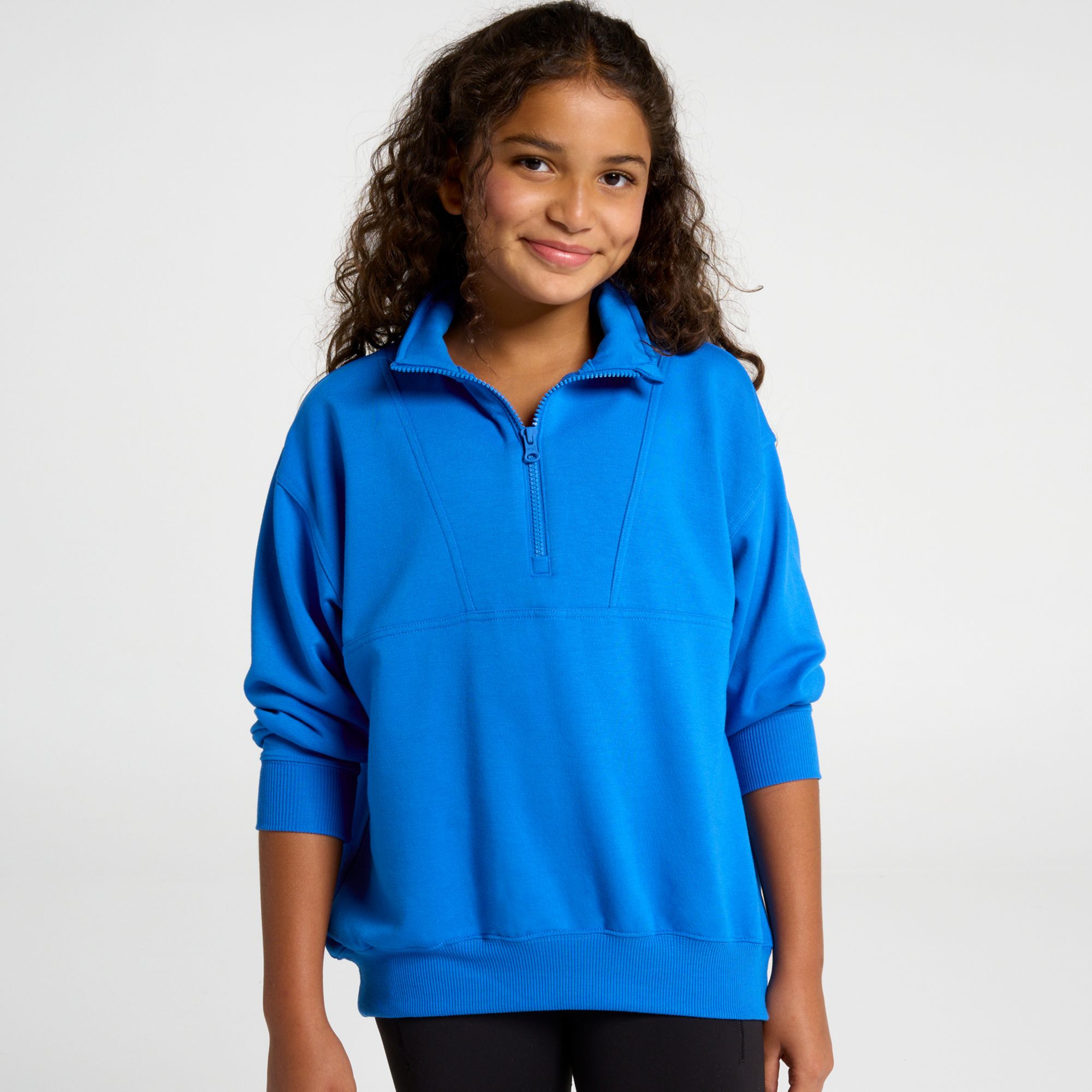 1/2 zip collar allows her to easily layer and vent heat