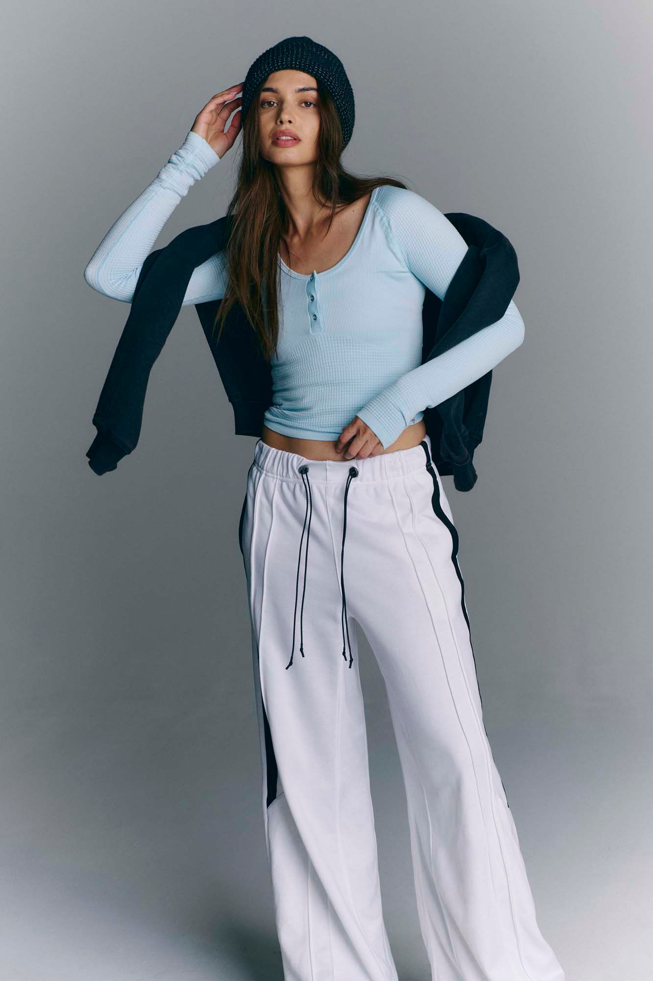 So sleek and versatile, this top features a smooth, soft fabrication and Henley silhouette with a peaky back cutout, deep scoop neckline, and flattering underbust stitching.