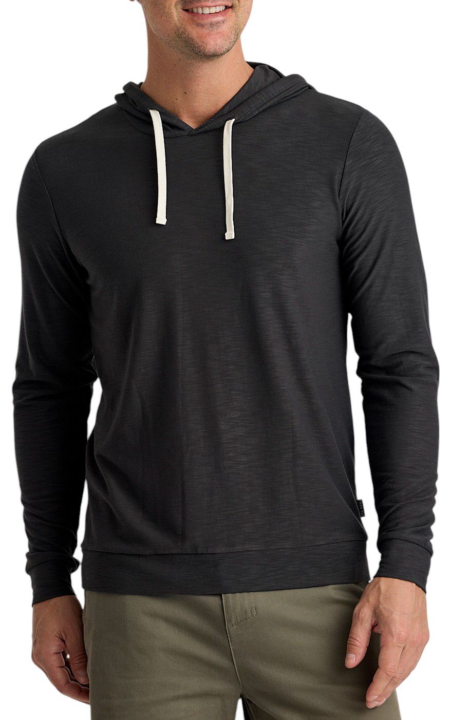 Introducing the Free Fly Men's Bamboo Slub Hoodie II, designed for ultimate comfort and performance. This classic fit hoodie features a relaxed hood with drawstrings, reinforced cuffs, and hem for shape retention, and anti-odor properties to keep you fresh throughout the day. Perfect for outdoor adventures, this hoodie is crafted from a unique blend of bamboo, polyester, and spandex, making it an ideal choice for fishing or any other outdoor activity.