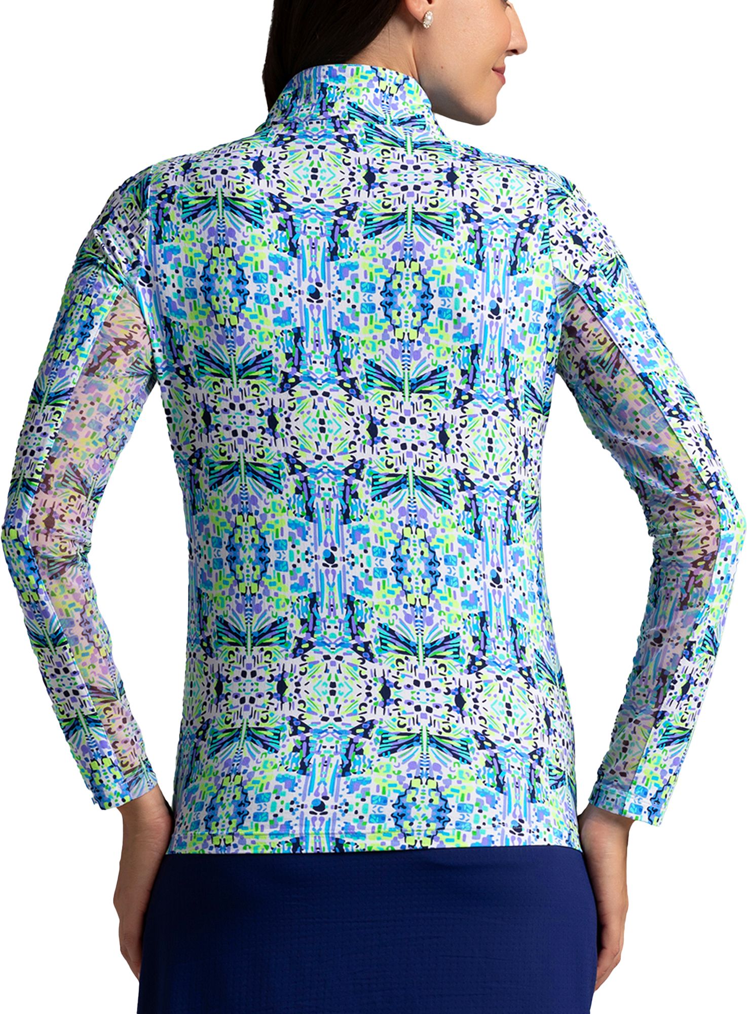 IBKUL Women's Ridley Print Long Sleeve Mock Neck Golf 1/4 Zip Shirt
