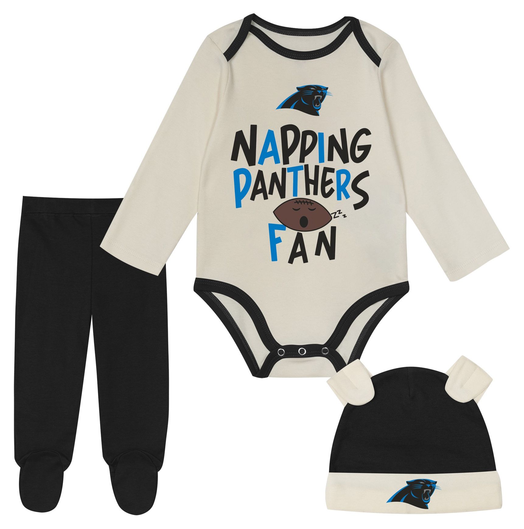 NFL Team Apparel Infant Carolina Panthers Black Newborn Little Champ 3-Pack Creeper Set