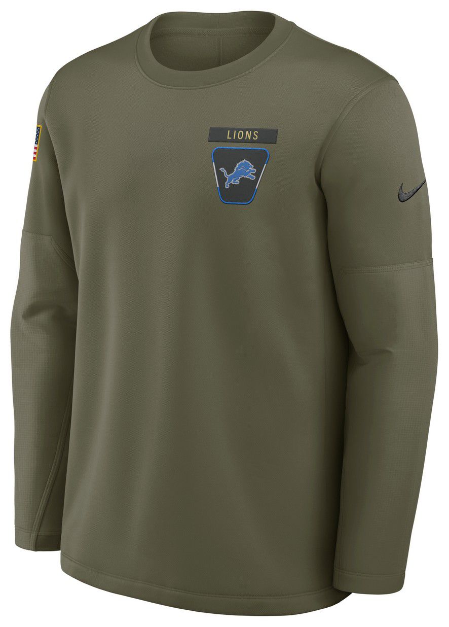 Nike Men's Detroit Lions Olive Salute To Service 2025 Coaches Therma-FIT Crew Sweatshirt