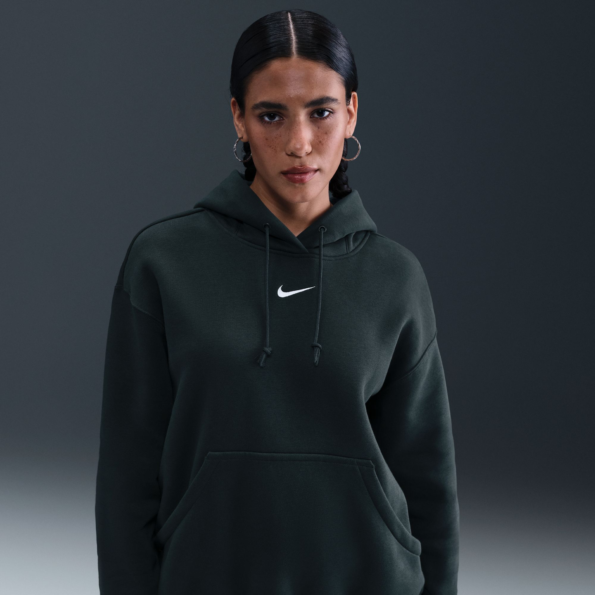 Grounded in style, comfort and versatility, meet Nike's take on luxury loungewear. This classic hoodie helps you stay cozy all day long, thanks to midweight fleece that feels soft yet structured. Plus, exaggerated details (like taller ribbing and oversized fit) give you a trend-right look.
