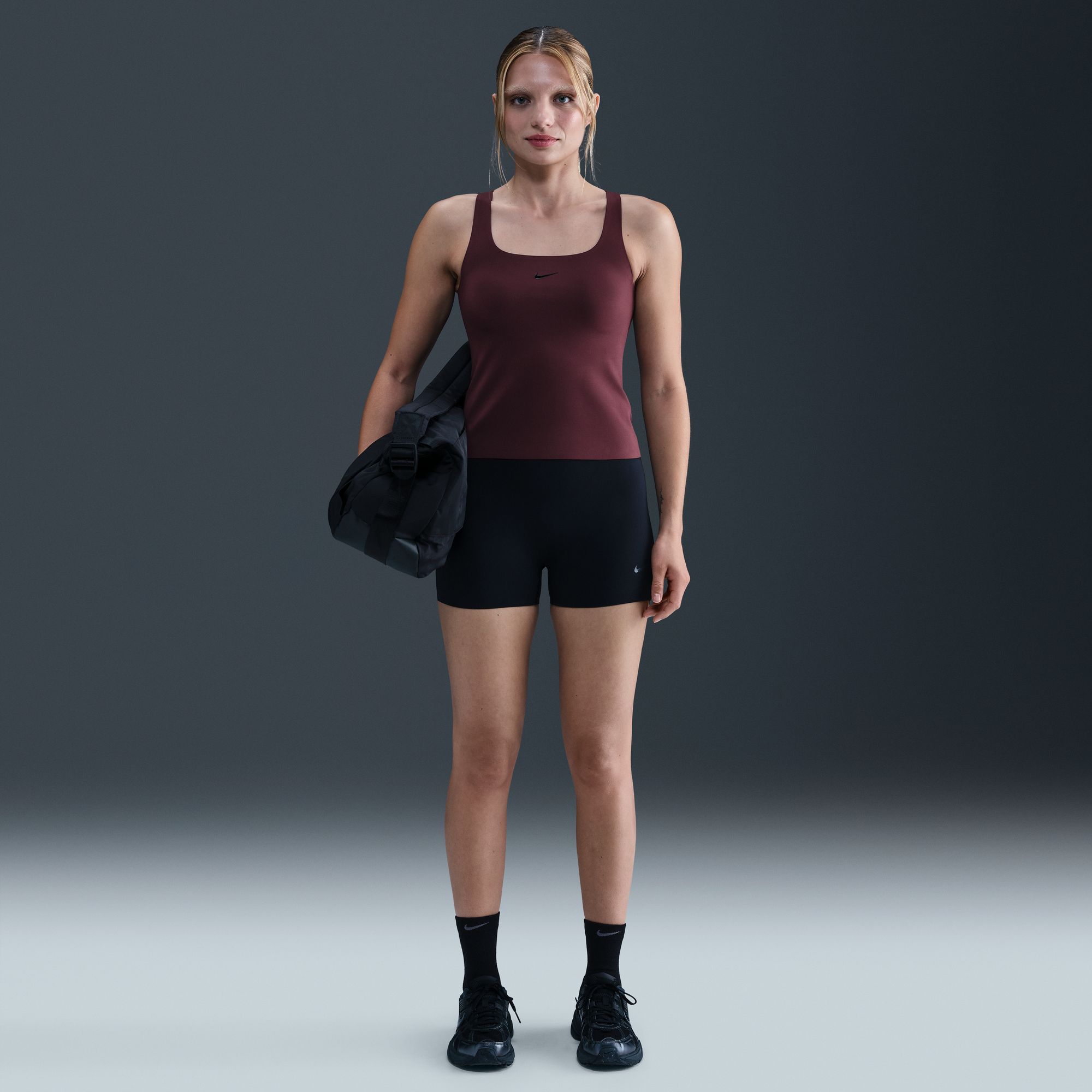 • Silicone Swoosh logo at center chest