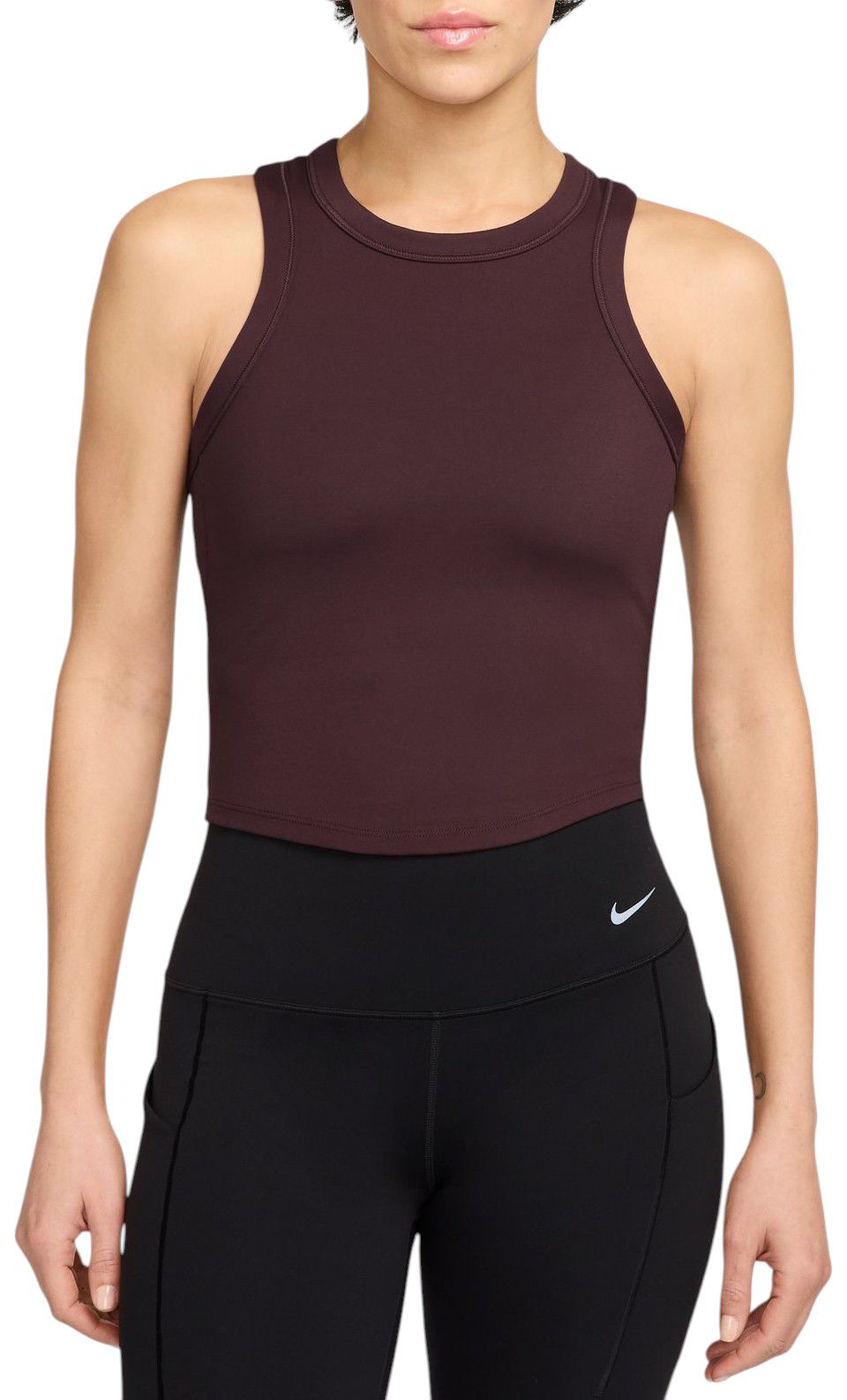 Up for a workout or down to chill, this Nike One tank top is ready for whatever you are. Its midweight, peachy-soft fabric dries quickly and stretches with your every move. Slightly cropped and snug, it's ready to meet your favorite high-waisted leggings for a head-to-toe look that you can feel confident and comfortable in from your morning stroll to your evening wind-down—and at all the stops in between.