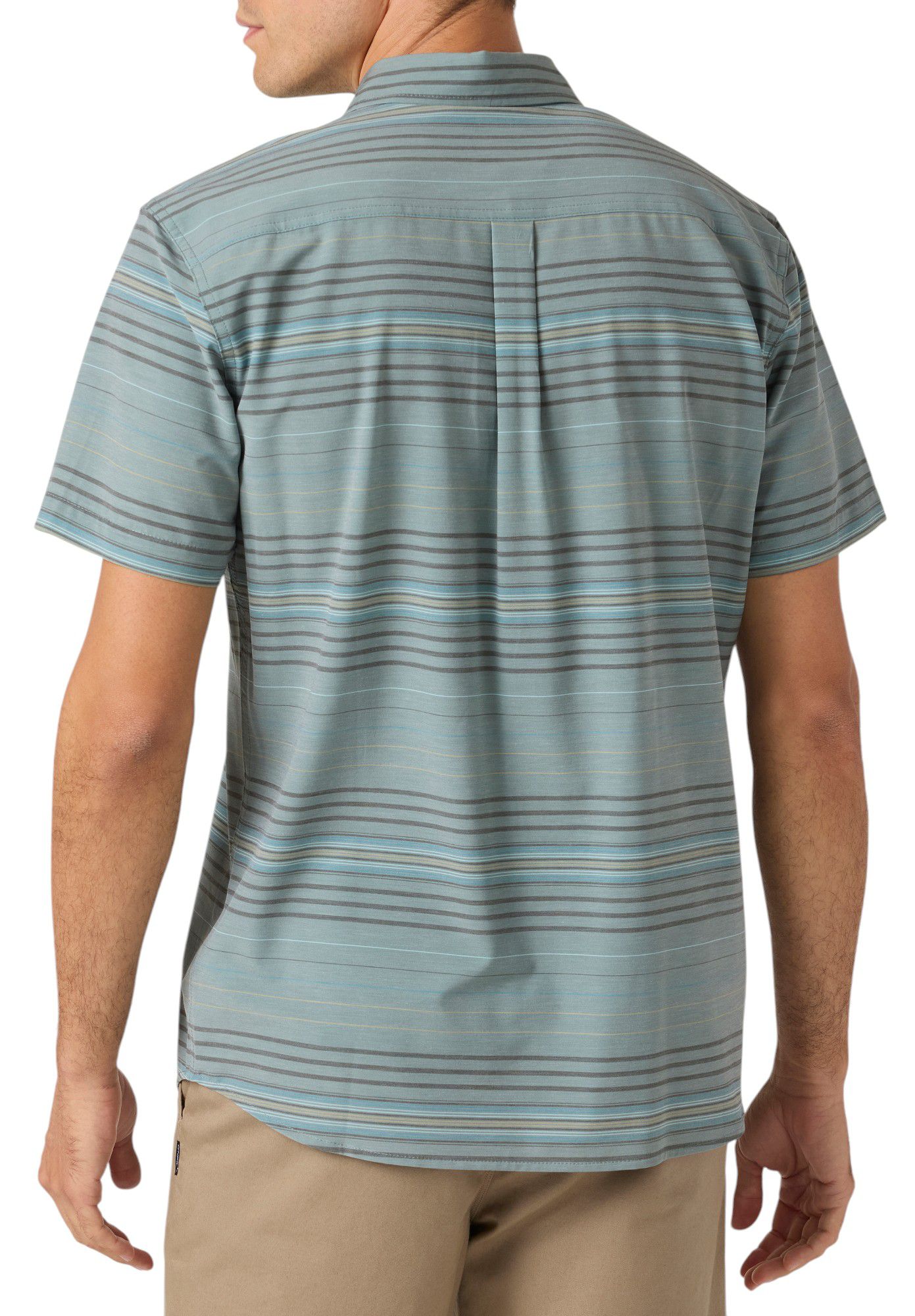 Introducing the O'Neill Men's TRVLR UPF Traverse Stripe Shirt, your ultimate companion for comfort and style. This lightweight, wrinkle-resistant button-down shirt features a printed polyester-cotton-elastane blend, offering a standard fit perfect for any occasion. With O'Neill Hyperdry moisture-wicking technology and UPF 50+ protection, stay dry and protected under the sun while looking effortlessly cool.
