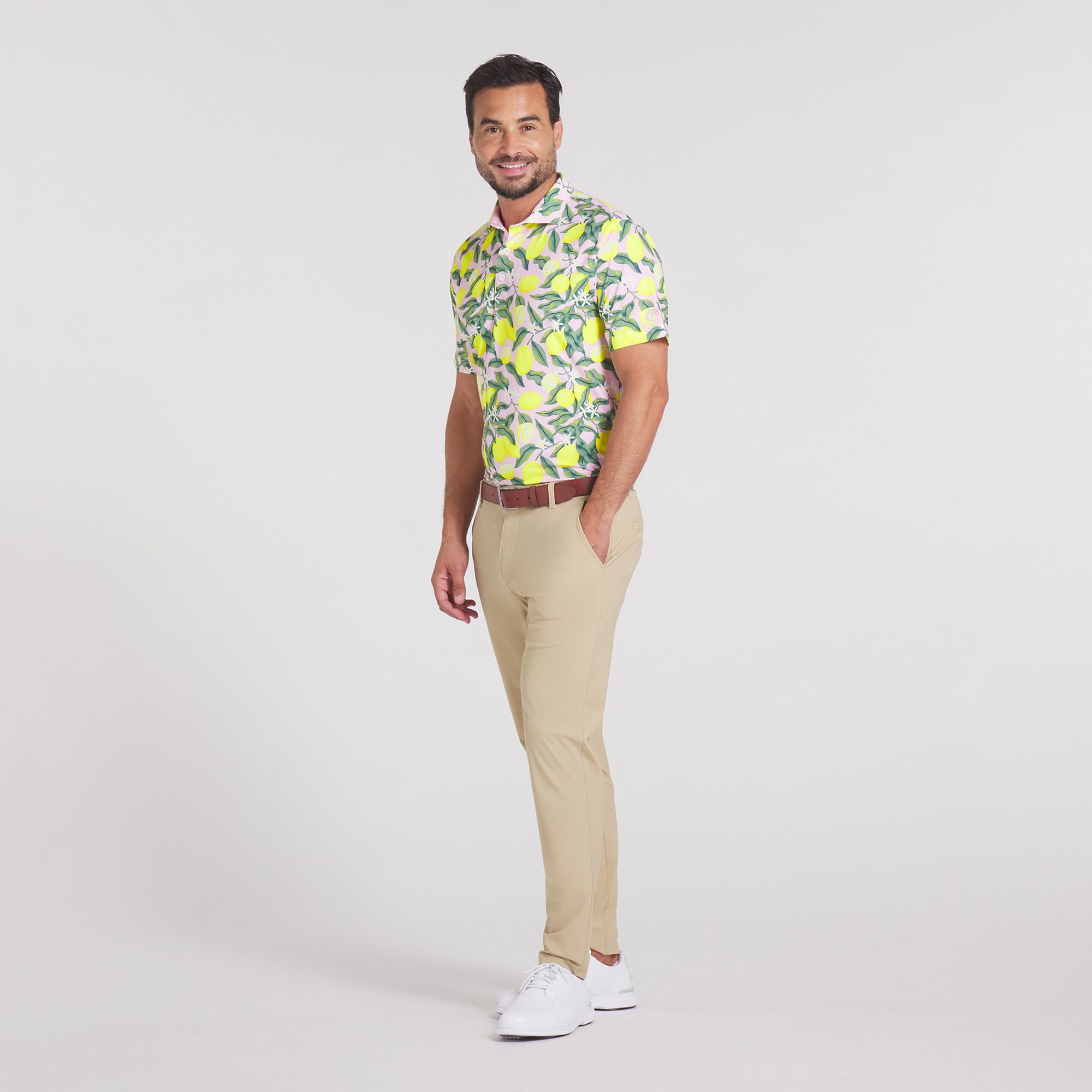 Iced tea + lemonade. Arnold Palmer + golf. True American classics. Take a victory lap in this nostalgic lemon-branch polo, perfect for the course or a vacation. Made with at least 90% recycled material, the breathable, fast-drying, lightweight fabric with 4-way stretch keeps you cool and comfortable, even on those sunny days at Bay Hill.