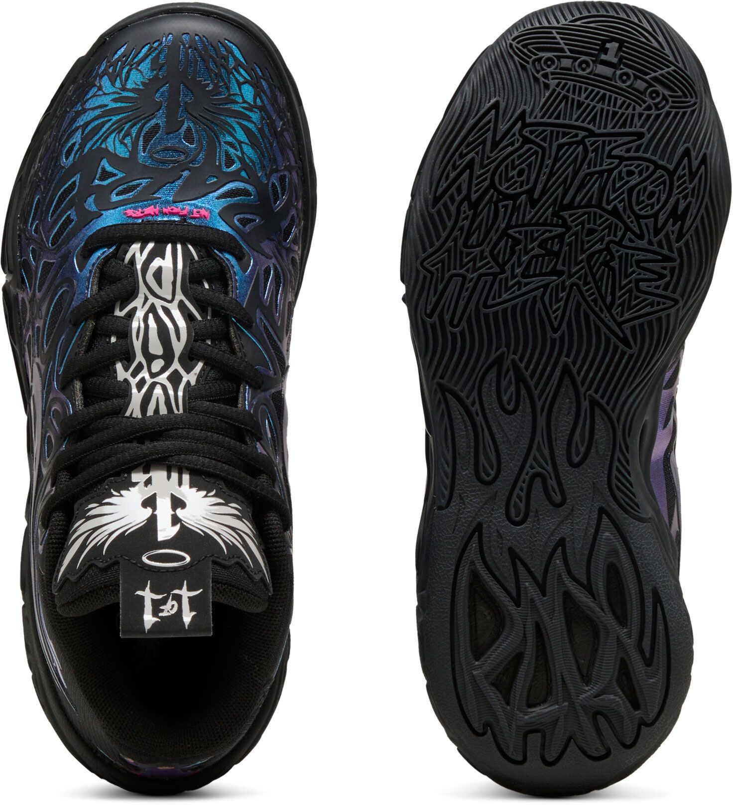 LaMelo Ball is not of this Earth - but fortunately he comes in peace. Inspired by Melo's otherworldly style of play, The MB.04's unique design is wrapped in alien tentacles with Melo phrases hidden throughout. With a supportive double-layered mesh upper and NITROFOAM™ cushioning for on-court power, the MB.04 has it all. Reflections features a black upper covered in reflective details with a custom 'disco Melo' emoji at the heel.