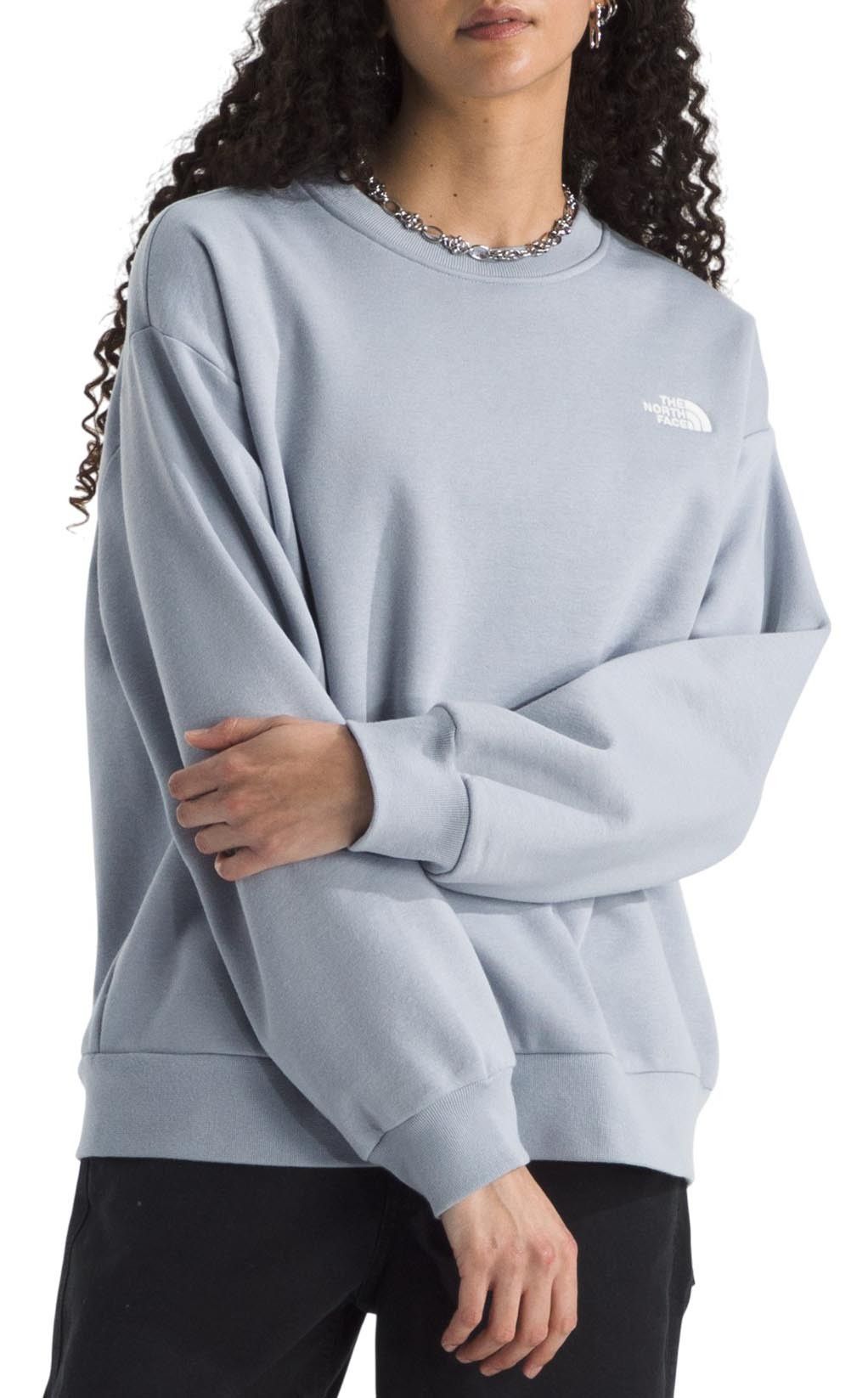 Crafted for cool-weather comfort, the North Face Women's Evolution Oversized Crewneck Sweatshirt offers a trendy, roomy fit with stylish balloon sleeves and dropped shoulders. The classic crewneck design, complete with ribbing on the collar, cuffs, and hem, ensures a secure and cozy wear. Featuring an embroidered logo on the left chest, this pullover is perfect for both outdoor adventures and casual outings.