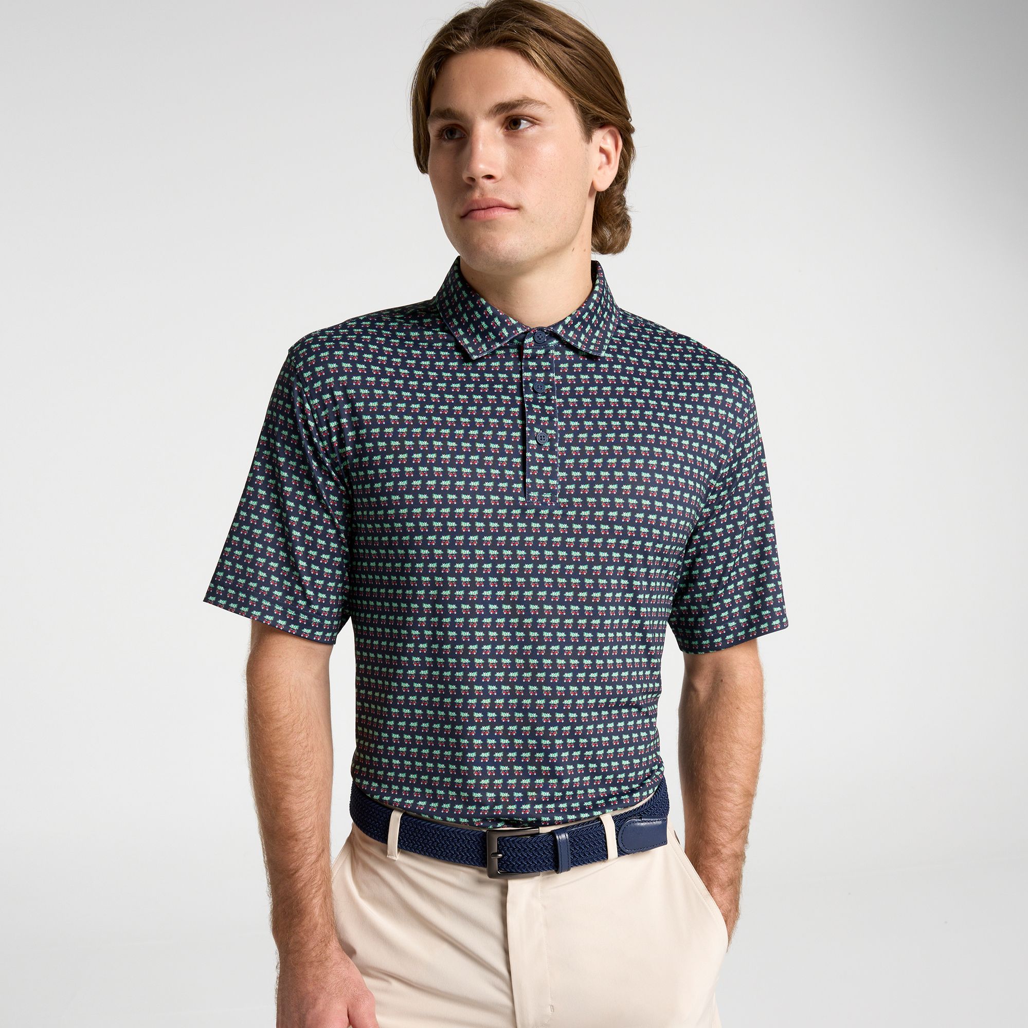 Elevate your golf game and your style with the Walter Hagen Men’s Performance 11 Holiday Print Golf Polo. Designed for performance, this polo features a breathable, 4-way stretch fabric that moves with you, keeping you comfortable from the first tee to the final putt. The moisture-wicking and wrinkle-resistant technology, paired with a striking jasmine print and UPF protection, ensures you look sharp and stay cool under the sun.