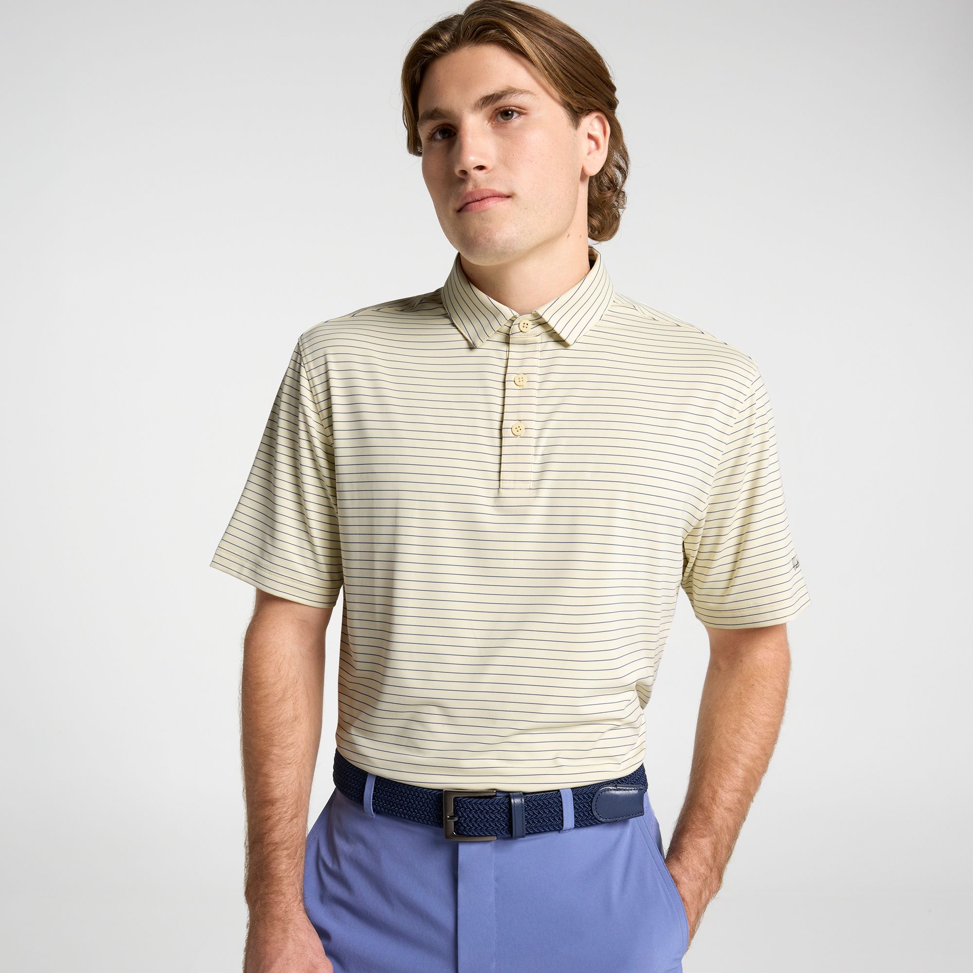 Elevate your golf attire with the Walter Hagen Men's Performance 11 Classic Stripe Polo. Designed with soft, breathable fabric and 4-way stretch, this polo ensures all-day comfort and full range of motion for every swing. Featuring moisture-wicking technology, UPF 50+ sun protection, and a wrinkle-resistant finish, it keeps you looking sharp and feeling fresh from the first tee to the clubhouse.