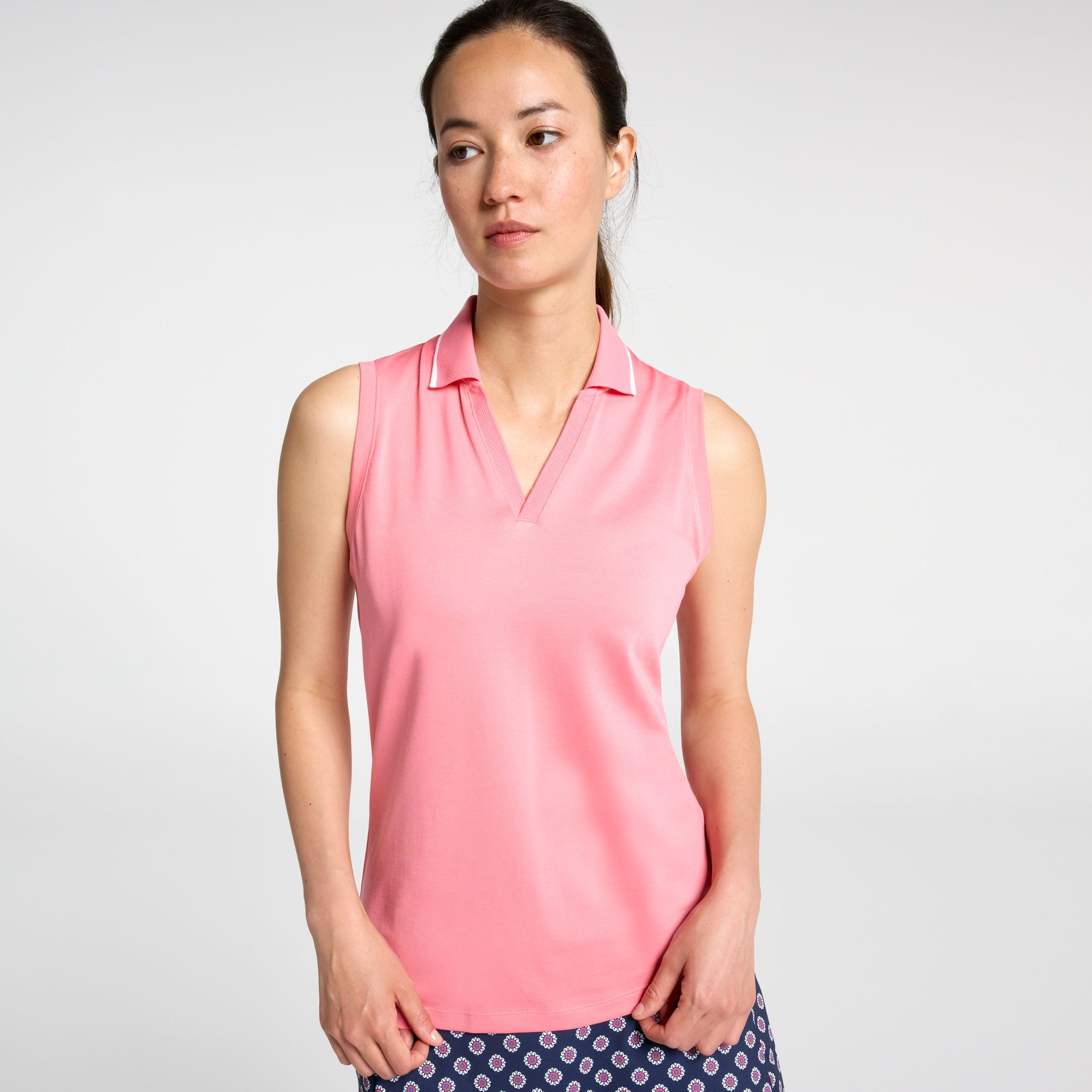 Elevate your golf game and style with the Walter Hagen Women's Performance 11 Sleeveless Johnny Polo. Designed with a V-neck collar and sleeveless cut, this polo offers a chic and sporty look. Featuring moisture-wicking technology, breathable construction, and 4-way stretch fabric, it ensures you stay cool, comfortable, and unrestricted with every swing.